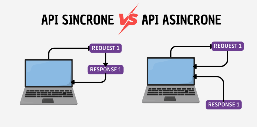 The APIs (Application Programming Interface) work according to a request-response model: in an API call, the client sends a request to the server, which replies by providing the requested data or a message. This general scheme can be implemented in two execution modes: synchronous and asynchronous.