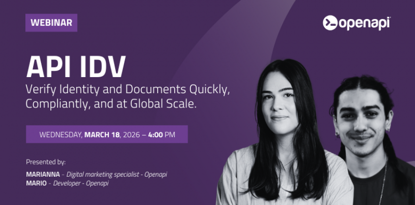 Join the webinar dedicated to Identity Verification APIs (IDV), the ideal solution for building secure, reliable, and globally scalable digital identity verification processes. During the event, you will discover how to integrate identity and document verification into your systems and business workflows, improving security, reducing the risk of fraud, and ensuring compliance with KYC and AML regulations.