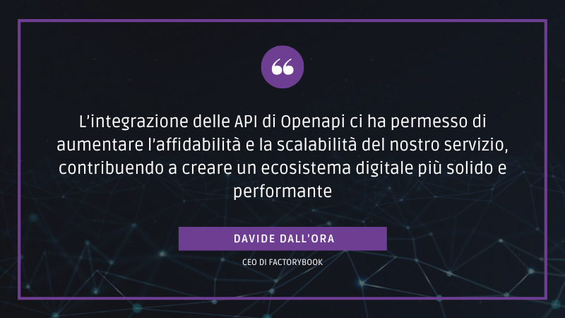 Openapi proved to be the ideal technological partner to achieve these objectives and support Factorybook in its growth path. Let’s take a closer look at which API services were integrated and what results were achieved.